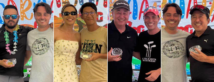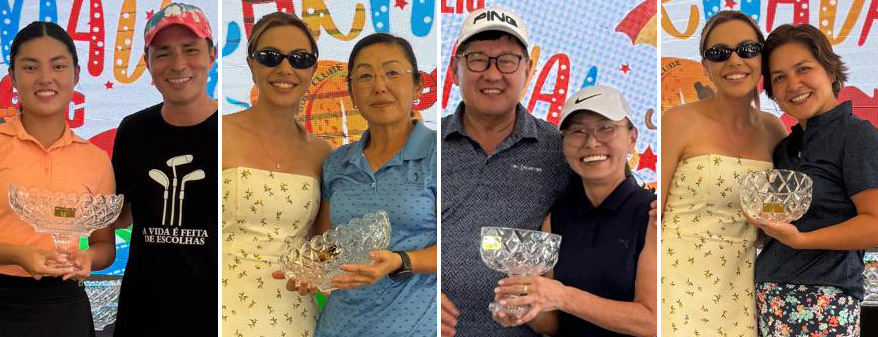Os golfistas Leonardo Yoshikawa, Augusto Tanaka e Gabriela Amano (foto baixo) faturaram as taças de campeões scratch, em suas respectivas categorias, do Torneio de Carnaval 2026. O evento esportivo premiou o campeão e vice scratch e os melhores classificados handicap no tee azul, tee branco e tee vermelho e os vencedores da premiação especial.