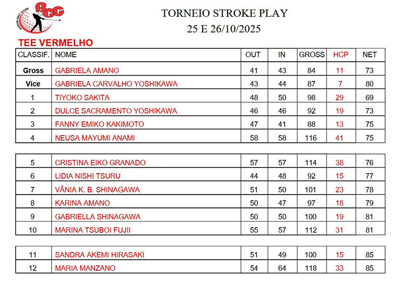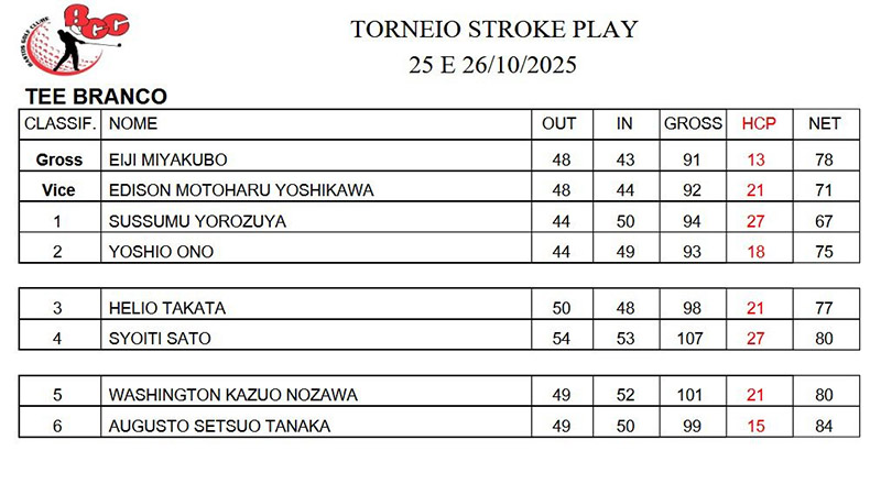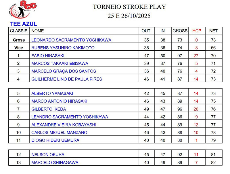 01/11/2025: Torneio Stroke Play - Novembro 2025 Acontece nos dias 1 e 2 o Torneio Stroke Play - Novembro 2025.