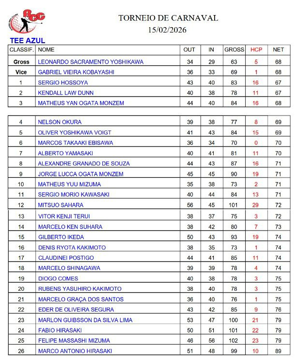 12/04/2026: Torneio Mensal de Handicap – Abril 2026 Torneio Mensal de Handicap foi realizado no dia 12 de abril de 2026 no Bastos Golf Clube.