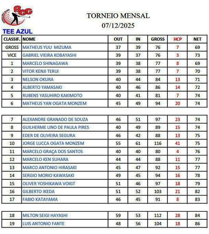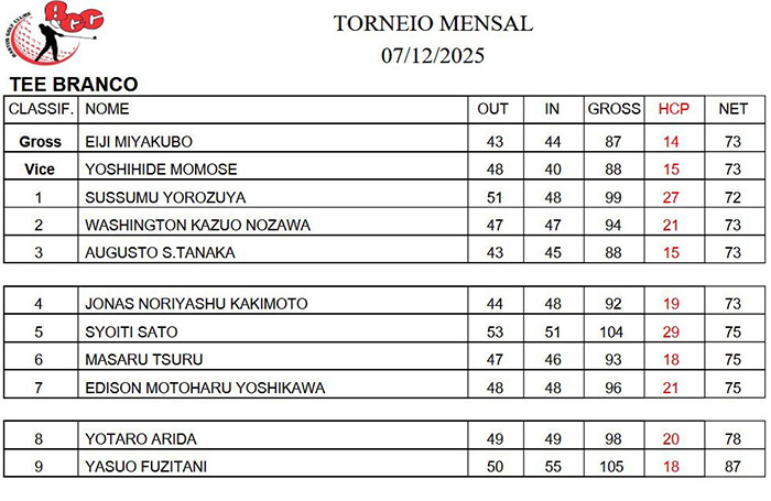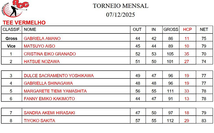 13/12/2025: Torneio de Golfe Sênior e Pré-sênior - Dezembro de 2025 Torneio de Golfe Sênior e Pré-sênior de 2025 do Bastos Golf Clube, dia 13 de dezembro